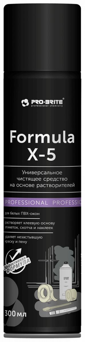 Аэрозольный готовый к применению препарат, прозрачный без цвета со специфическим запахом, против скотч-клея, маркера, чернил, нефтепродуктов, жиров и отпечатков пальцев, смолы, графитового порошка и сажи на стёклах, кафеле и др. керамике, камне, алюминии и др. металлах, отдельных видах пластика, деревянных и др. поверхностях. Не повреждает лакокрасочные поверхности. Растворяет клеевую основу этикеток, наклеек, стикеров и пр. Отбеливает некоторые виды пластика. Легко воспламеняемый. Не замерзает. Имеет выраженный запах растворителя!