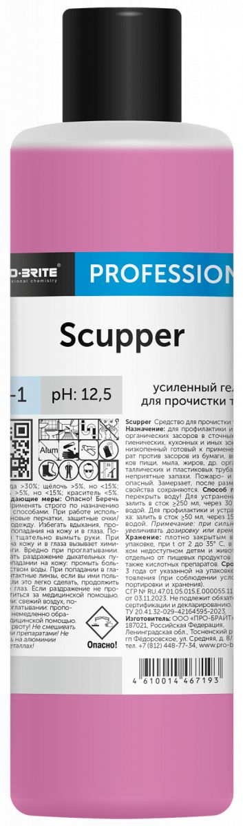 SCUPPER (Скаппер) 1л, усиленный гель для прочистки труб